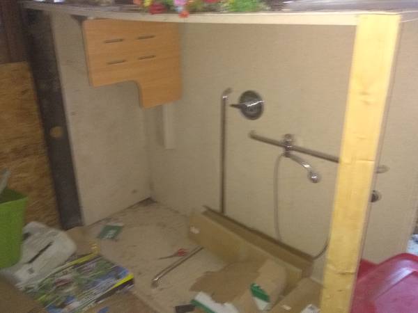 My parents was remodeling there old double wide and my mother was diagnosed with sclerosis of the liver. Instead of doing the remodel, they had decided on bringing in a brand new double wide! This walk-in handicap shower was bought brand new and has never been installed. Excuse the mess for it is in the other trailer that they moved out of. You will have to come pick it up due to the fact my dad only has a Kia soul and no other way of hauling it. Asking 600$ obo....they paid 3500$ for it 2 years ago