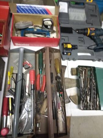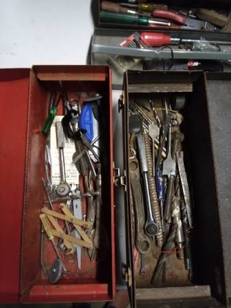 Two vintage tool boxes. One is red and the other gray/silver. Each box has various tools in it. $25 each. Located in Galatia, outside of Harrisburg. Call (text don't work) to view or buy: