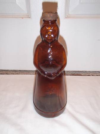 This is an original vintage Aunt Mrs. Butterworth glass syrup bottle. It has a metal lid and there are no chips or cracks. Multiple Available.