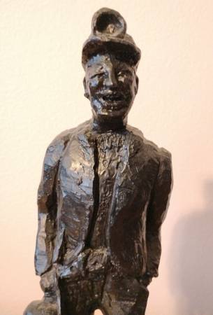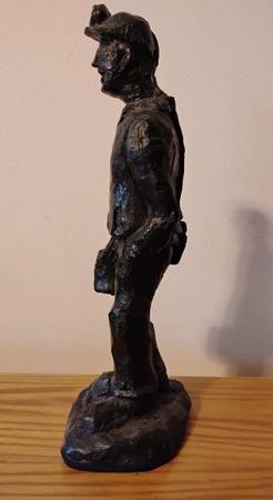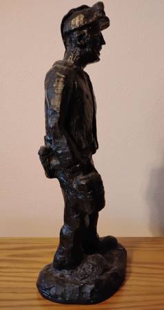 Solid material. Right hand carrying lunch bucket, left hand in pocket. $10 cash only.