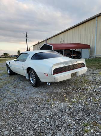 1979 Pontiac Trans Am. For sale by owner. Ive owned this car for around 39 years. Car has 123,839 miles on the odometer. Oldsmobile 403 engine,automatic transmission. Pretty well all original except cd radio. Very good shape and always been serviced and stored in climate controlled garage thru the years. Basically it needs the headliner installed, I have head liner in box, AC needs charged, gas guage needs addressed, stuck on full, dash is cracked in one little spot. I have 4 aluminum snowflake wheels, 3 trim rings also. Text me anytime at: show contact info