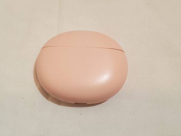 This is a working set of wireless earbuds that are rechargeable. The case and earbuds are pink.