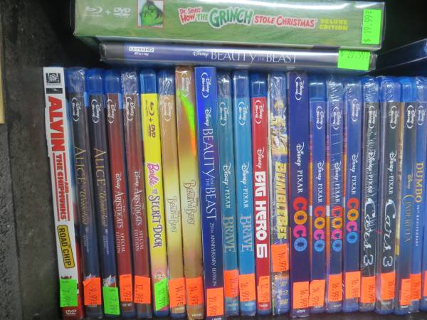 I have for sale the best deal you will find on Disney blu rays, sealed blu rays and DVD's starting at $6. Zoom in for prices and titles on the pictures. These blu-rays and DVD's change constantly. If interested, give me a call (no emails, I do not check it), or better yet, come see it in action for yourself at 217 West Walnut, downtown Carbondale from 10am - 5pm Wednesday - Saturday right on the corner of 51 South and Route 13 (Walnut St), PICK UP ONLY. Hurry up, this deal won't last long!! Please call if you need this held (will hold up to 24 hours of the time you call).