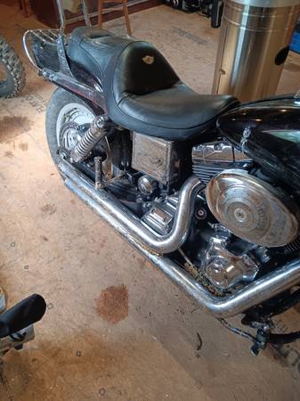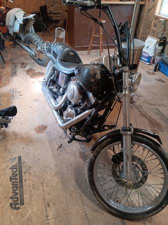 2003 Harley Davidson Dyna Wide Glide Anniversary - 1450 cc's. 88 engine with motor work, has CAM. 5 speed manual transmission. Has Vance and Hines exhaust pipes. Runs good, no mechanical issues. Does need cosmetic work / accessories, front fender, tank, handlebars and forward controls. This is a very fast bike. NO TRADES
