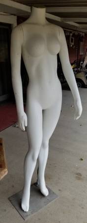 Heavy mannequin. Magnetic arms to the body. Heavy metal stand. Stands 66" tall. You can put a Styrofoam head on it. Harrisburg $60
