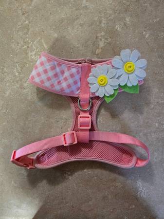 Cute dog harness that us adjustable. Size is not on it but my girl wears a medium (chiweenie). Can adjyst size down so should fit small/medium. $5 Mt Vernon IL pick up