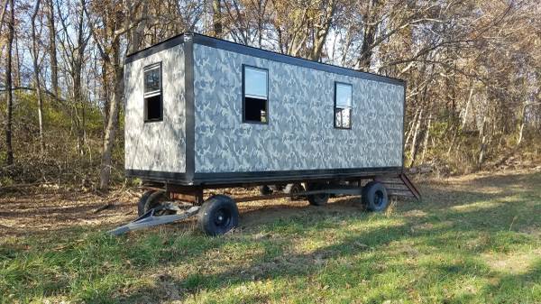 This is a mobile cabin with large air tractor tires. It can be moved from one location to another PULLED. it is not motorized.