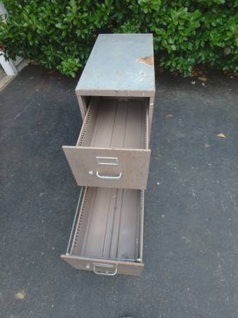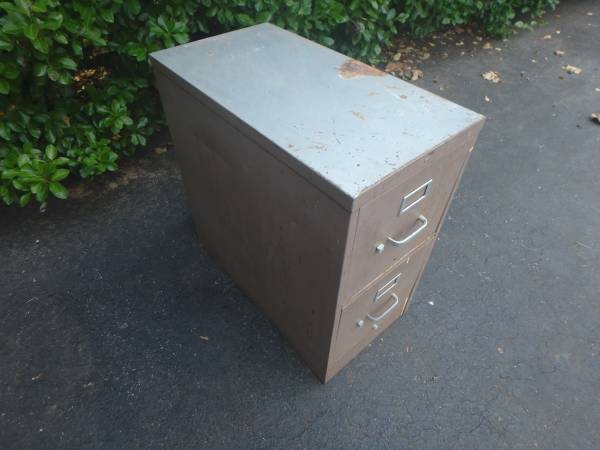 This is a 2 drawer heavy duty metal file cabinet. The drawers work fine and it measures 15" wide, 29" deep, and 29" tall.