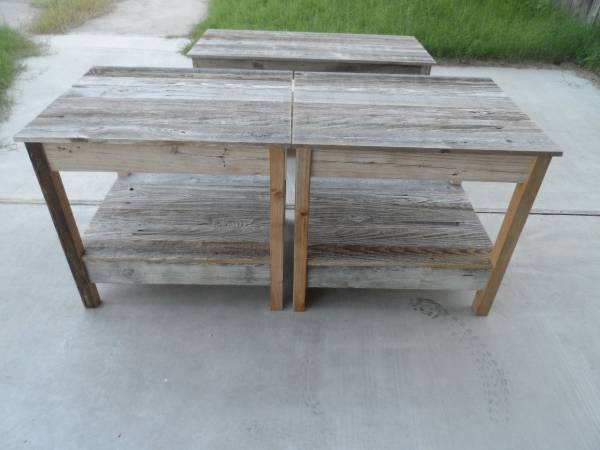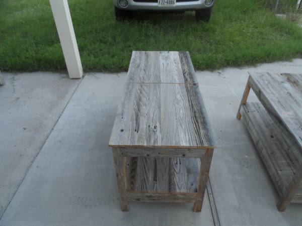 Here is a coffee table and end table set of barn wood for a medium size living room. The coffee table has a hidden drawer on both ends. No drawers or shelf on the end tables. This set is from recycled Yellow Pine and Western Red Cedar fence boards. See my other listings for other sizes of the coffee table. End tables are 29 L x 19.5 W x 22.5 H. This coffee table is 43.5" L x 24.5" W x 19" H. I have a smaller hidden drawer coffee table in other listings. I also have small set that has no drawers in another listing. I won't suggest what items you can hide in the drawers but the depth of the drawers is 2.25" in the clear. Drawer slides are 100 lb. rated, full extension, ball bearing and 18" long. Keep in mind, once you brag about your hidden drawer, it's not a secret anymore. Check out the pictures of the closed and open position of the drawers and you can see how undetectable they are. You just push on the drawer front and the drawer pops out. The bottom stretcher prevents the drawer from being activated accidentally by vacuuming or sweeping the floor. If barn wood doesn't appeal to you, I can build the same thing custom sized from any species except exotics, we have enough beautiful wood here that is sustainable. Cost would be about another 200.00 because of the detail in a finished piece of furniture. Last picture is of the construction details of the joints of stretcher to leg. There are 2 dowels in each joint of all my furniture. I glue and clamp these up on my cast iron table saw top which is dead flat so all my furniture is square, level and plumb (perpendicular).