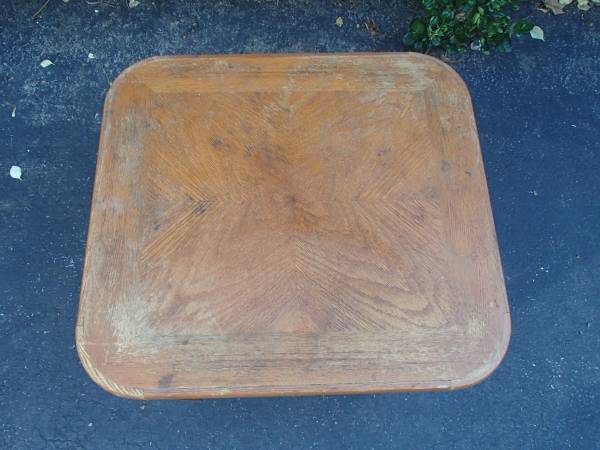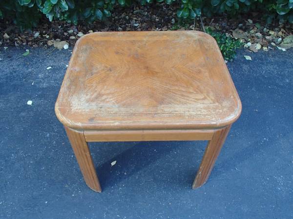 This is a sturdy wood end table that measures 24" long, 22" wide, and 19" tall.
