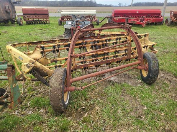 This is a good 256 dolly wheel new Holland bar rake the bars are tight it has almost all its teeth gearbox is good and kicks in and out of gear call six one eight seven nine zero three five four four