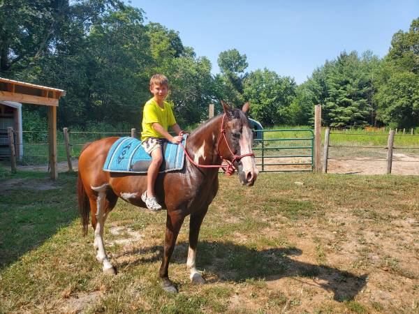 Good with farrier..loads easy...needs time under saddle..I bought him for my 9 yr old grandson that doesn't have any riding experience and this horse is a little to much..he just needs someone who knows how to ride . show contact info