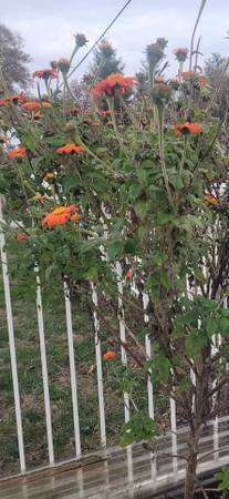 I have a lot of Mexican sunflower seeds from my harvest last fall. Each plant will produce one 4-5-foot-tall stalk with lots of branches that will be full of the beautiful sunflowers. Selling 4 seeds for $1. I have a lot so can get as many as you want. These germinate quickly and yes you will have the flowers this summer and fall if plant now. Picture was taken towards end of last fall when plant was winding down - sorry don't have a better picture. Mt Vernon IL , Salem IL or Odin IL meet