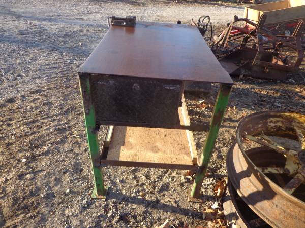 Steel Work Table - 30" x 4' table has 3/16" steel top, 2" steel legs, 4" vise w/ adjustable base, 12" x 19" pull out divided drawer, and 3/4" plywood shelf. Great for any garage or shop. $250.00...