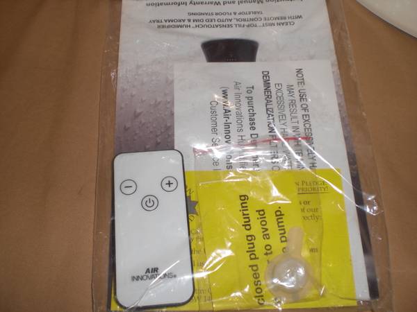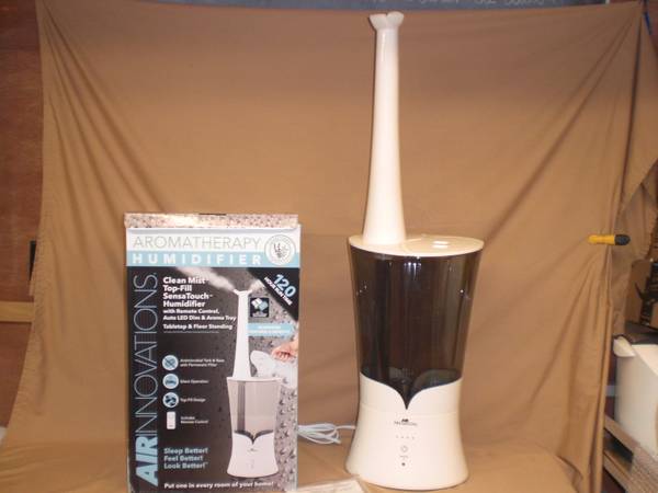 AIR INNOVATIONS CLEAN MIST HUMIDIFIER FILLS FROM THE TOP-NO NEED TO REMOVE THE TANK 2 GALLONS REMOTE CONTROL TABLETOP AND FLOOR STANDING WITH THE REMOVEABLE MIST TOWER ANTIMICROBIAL TANK AND BASE...