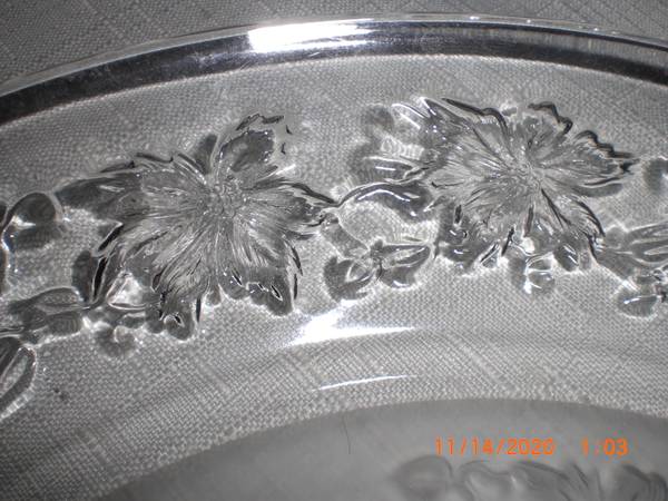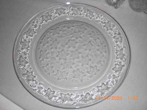 PRINCESS HOUSE "FANTASIA" DESIGN DINNERWARE, PLATTER AND MUGS BEAUTIFUL POINTSETTIA DESIGN - CLEAR WITH FROSTED DESIGN IN THE CENTER OF EACH DISH GREAT FOR YOUR CHRISTMAS ENTERTAINING INCLUDES: 13...