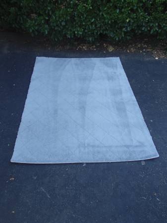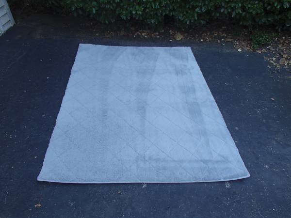 This is a grey rabbit faux fur with diamond pattern that is plush and ultra soft rug. Overall it is in great shape and measures 5' by 7'.