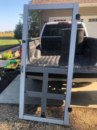 White, PVC screen door. 36” wide by 79 1/2” tall Has all hinges and slide lock. Currently a left hand door (hinges on the right and pull handle on the left) Can be reversed.