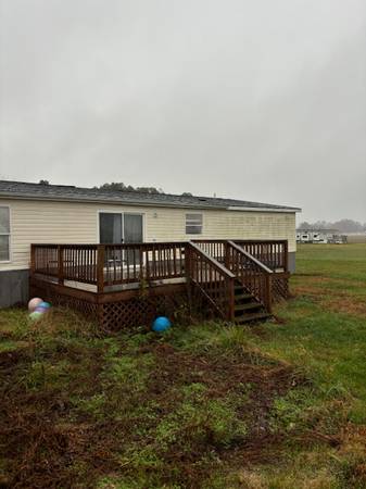 Modular home, 1997 model, 5 bedrooms, office, living room, laundy room. Attached 2.5 car garage. large deck on rear. Nice covered porch on front. On 1.2 acre lot. outside city limits. Owner financing available with 20% down, 1300/month including insurance and taxes.