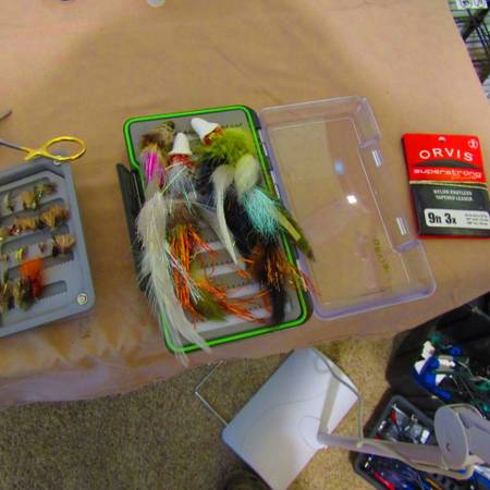 Ever thought about taking up flying fishing. Everything you would need to get started. Everything is new never been used. Brand is Orvis a brand name in fly fishing. 9' rod with reel & hard case. Chest waders with boots size 10, vest, net & string. Fresh water flies large & small go after trout, bass blue gill, crappie appropriate boxes to hold everything. various length leaders.