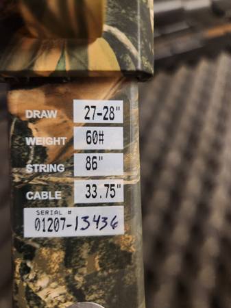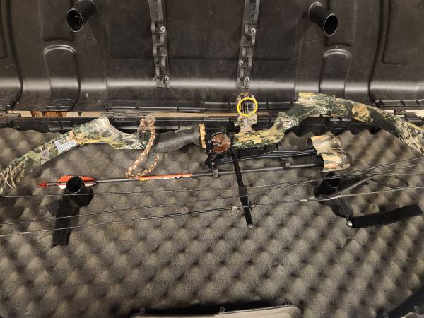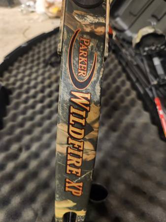 Parker wildfire xp bow very good condition. Whisker biscuit rest, micro 3 pin fiber optic sight, quiver, string loop, peep site and wrist strap. 27 to 28" 60lb comes with plastic case and 1 arrow....