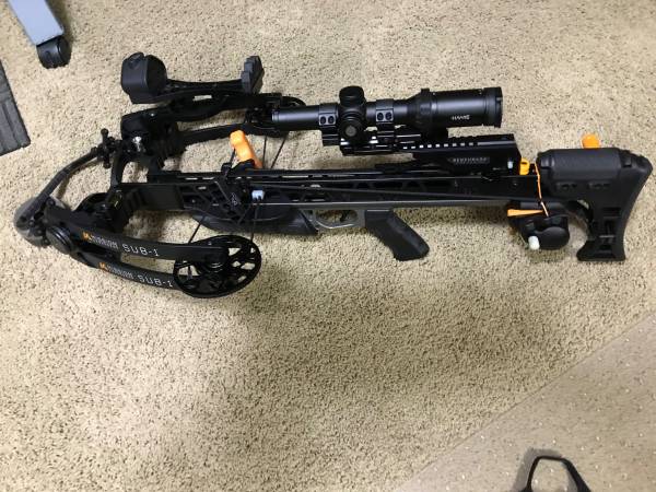 For sale mission Sub1 with accessories all in as new condition. Comes with Hawke XB30 scope, Pitimizer Speed Dial, Mission Level system and Quiver, Mission case, Mission RSD Crank cocking device, Spare Cocking Rope, Complete set of Cables & String. I bought this to carry on out of state hunts as a back up unit. As stated above it’s as new, sighted end ready to go.