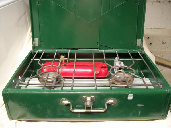 Made in August 1974. Works well. Great for power outages, emergencies, camping etc. Runs on liquid Coleman Camp Stove Fuel, white gas, or unleaded gasoline. This is the larger of the two burner Coleman stoves. Good condition. Cash only. Please email or call. No texts. Thanks.