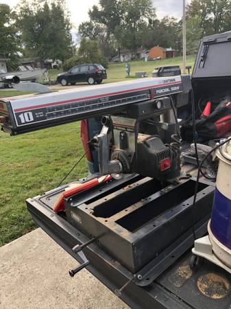 10 inch Craftsman Radial Arm Saw with Blades. Comes with the wood decking, a shop vac that sucks up the sawdust while sawing. I can deliver within reason