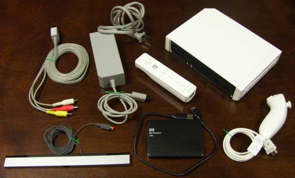 Includes the Nintendo Wii console, Wiimote, nunchuck, video cord, power cord, and sensor bar. If interested, give me a call at show contact info