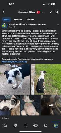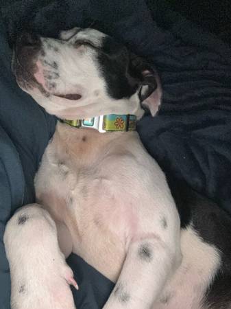 Lost my dog pleakly on July 23rd . She is pitbull mix with black and white and blue spots she would be currently between 8 and 9 months now . Pleakly is female