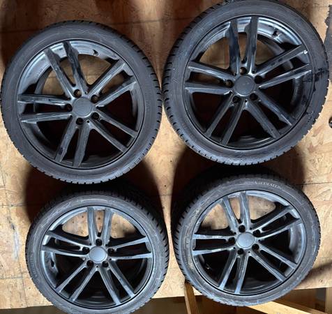 Snow tires on 18inch alloy rims with 5x120mm bolt pattern. Rims are in excellent condition and there is very good tread depth remaining, only used for one season. Selling because I no longer own the car .
