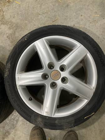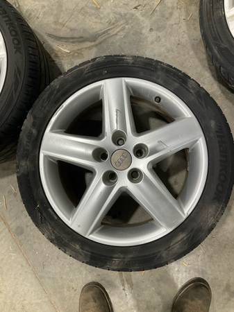 Set of 4 good used wheels with tires. Tires are junk. Minor scuffs and scratches. I have pics of all 4 wheels.